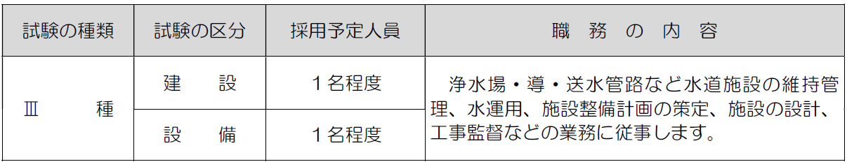◆ 職員採用「Ⅲ種」試験 受験案内はこちら→(PDF)1 試験の種類・区分等